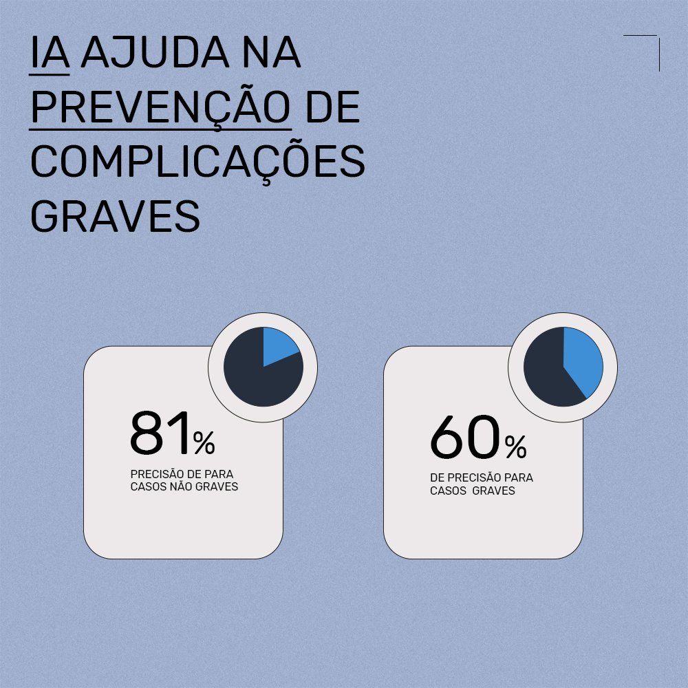 A Inteligência Artificial conseguiu uma precisão de 81% de predição para casos não graves através da análise de exames laboratoriais de rotina, e para casos graves a precisão foi de 60%. Essa nova tecnologia pode ser uma ferramenta útil nas triagens do Covid-19, melhorando a agilidade dos médicos nos hospitais e prevendo com maior precisão os pormenores de cada caso, usando como base exames básicos que estão disponíveis em todos os serviços de emergência. (https://www.unifesp.br/reitoria/dci/releases/item/5007-inteligencia-artificial-ajuda-a-identificar-a-gravidade-de-casos-de-covid-19)